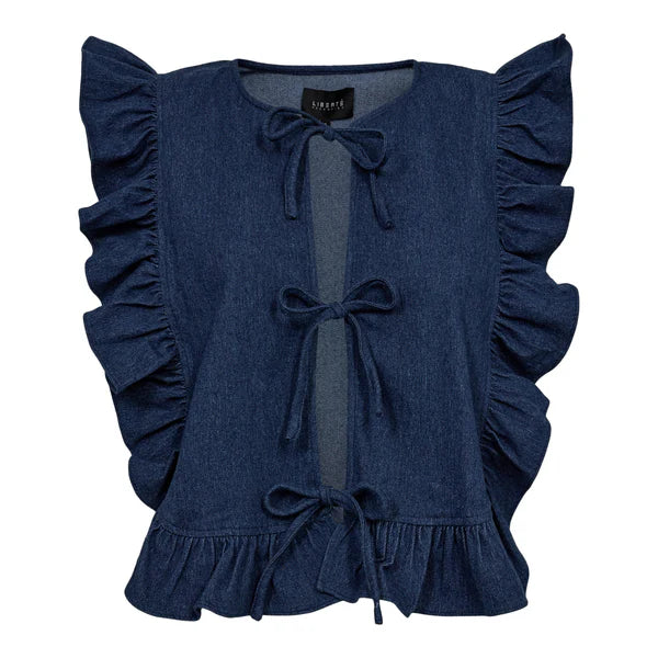 Denne denimvest er et must-have for enhver modebevidst kvinde, der ønsker at tilføje noget særligt til sin garderobe. Med sin alsidighed og feminine detaljer er den perfekt til både hverdag og særlige anledninger. Lad ASTA-FRILL-VEST blive dit næste go-to item, og løft dine outfits med dens tidløse charme og moderne kan