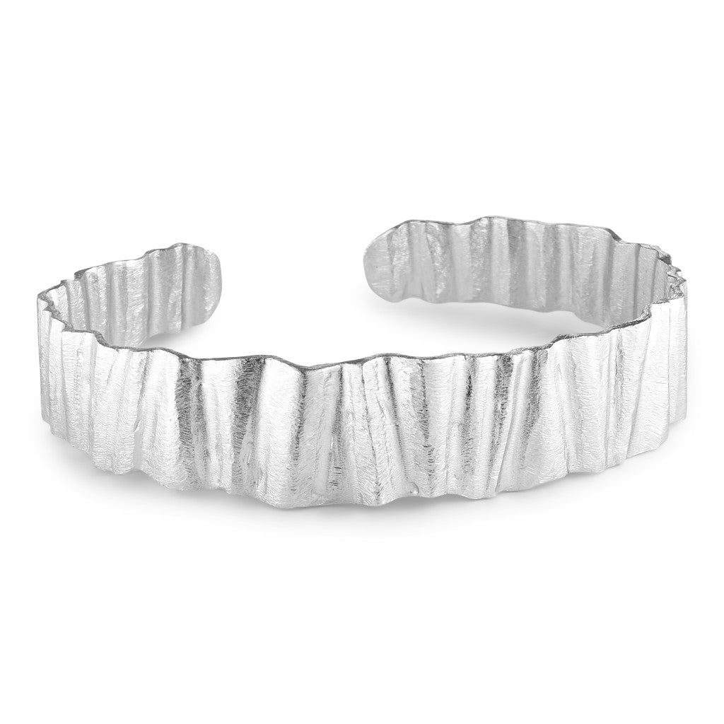Denne bølgede statement-armring er unik og stærk i sit design. Det bølgede look skaber et iøjnefaldende blikfang, der fanger solens stråler. Alene giver armringen dit look kant med sin rå charme og børstede finish.
