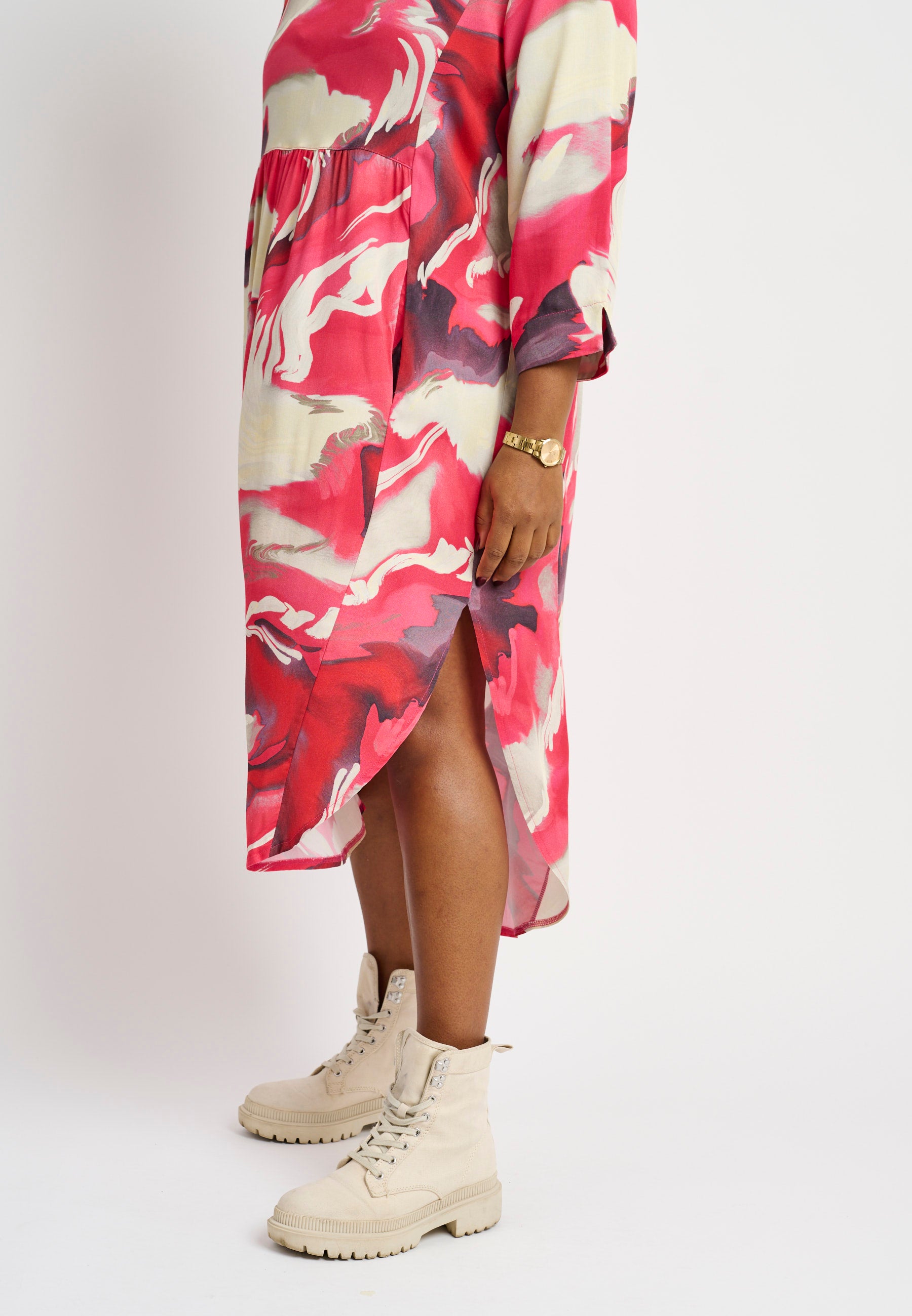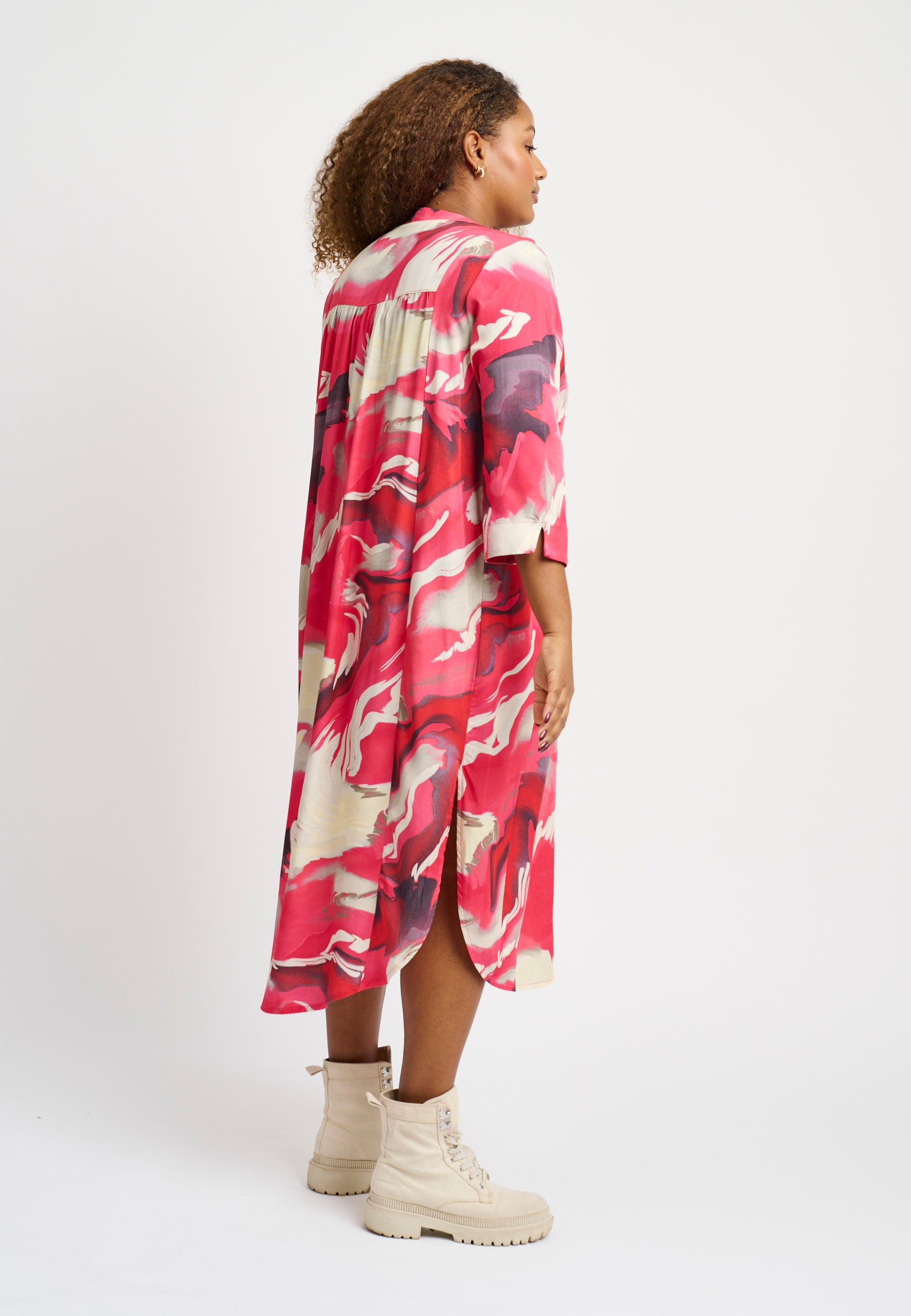 Denne kjole fra Pont Neuf er en perfekt kombination af moderne design og klassisk elegance. Med et stilsikkert print og en løs pasform, giver kjolen en både komfortabel og stilfuld følelse, der gør den til en ideel garderobefavorit. Kjolens midi-længde og trekvart-ærmer gør den til en ideel beklædningsgenstand til overgangsvejr, hvor du nemt kan tilpasse den til både kølige og varmere dage ved at tilføje lag, såsom en let jakke eller cardigan.