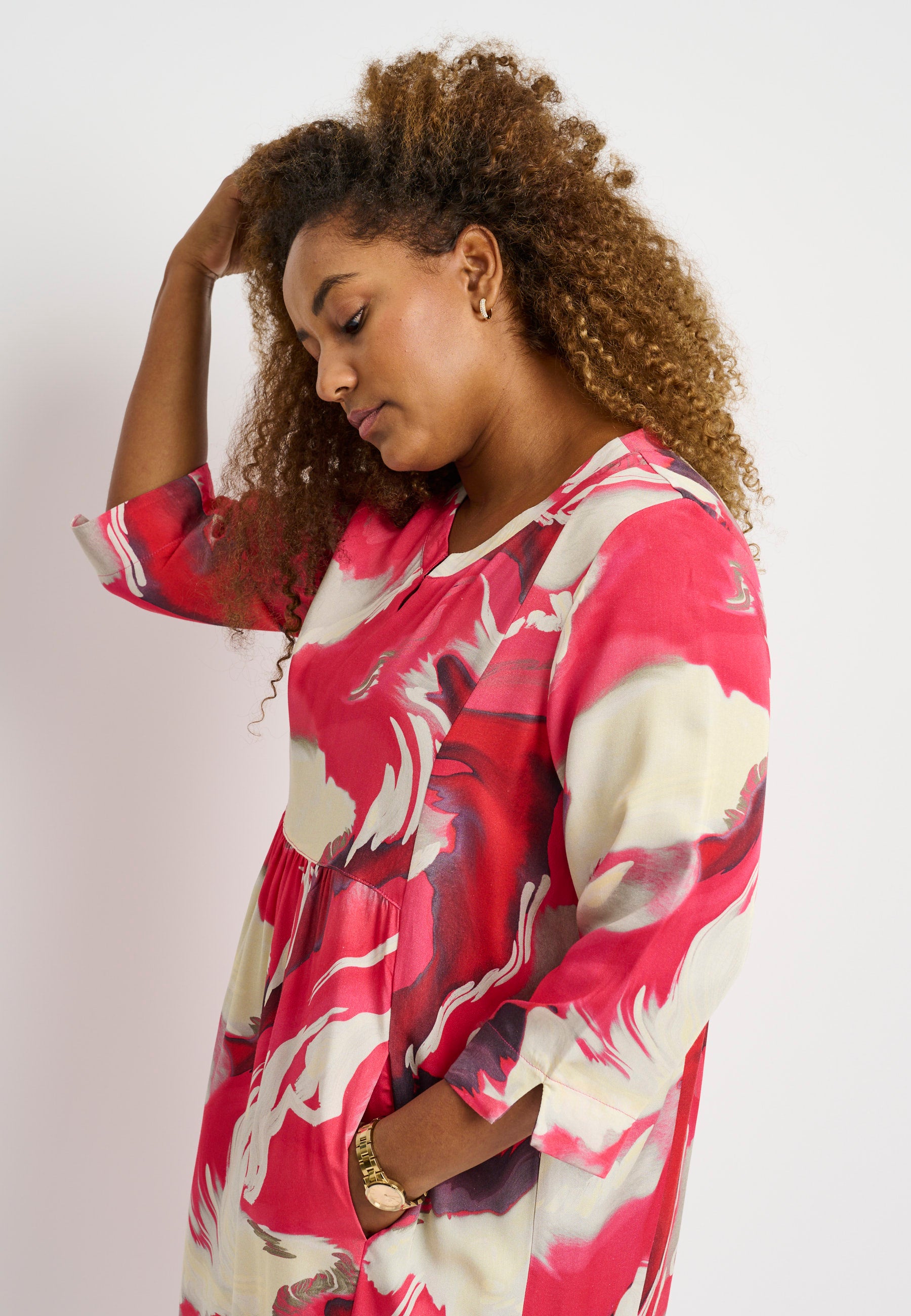 Denne kjole er en fabelagtig garderobetilføjelse, der er både praktisk og smuk. Den løse pasform giver komfort hele dagen, mens det moderne print gør den til et iøjnefaldende valg. Kjolen fungerer perfekt som en overgangsitem, der kan styles til både dag og aften, og den er let at tilpasse til forskellige årstider. Uanset om du har brug for en kjole til en formel lejlighed eller ønsker noget komfortabelt til hverdag, vil denne Pont Neuf kjole blive en alsidig og stilfuld del af din garderobe.