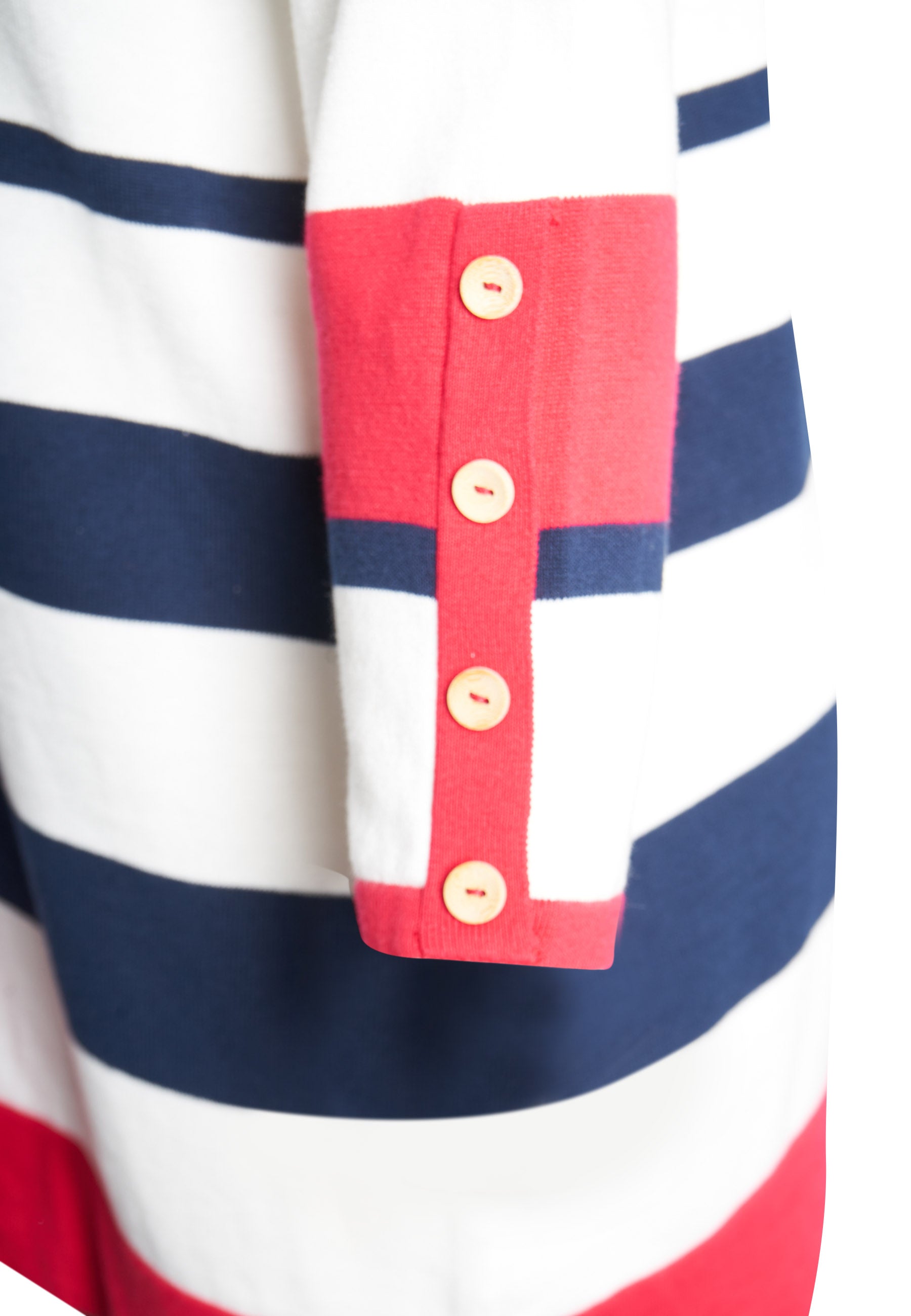 Den har en gennemknappet front, hvilket giver dig mulighed for at bære den enten åben eller lukket, alt efter hvilket look du ønsker. De smukke detaljer langs kanterne og ved knapperne tilfører et raffineret touch, mens den lette struktur sikrer et behageligt fit.